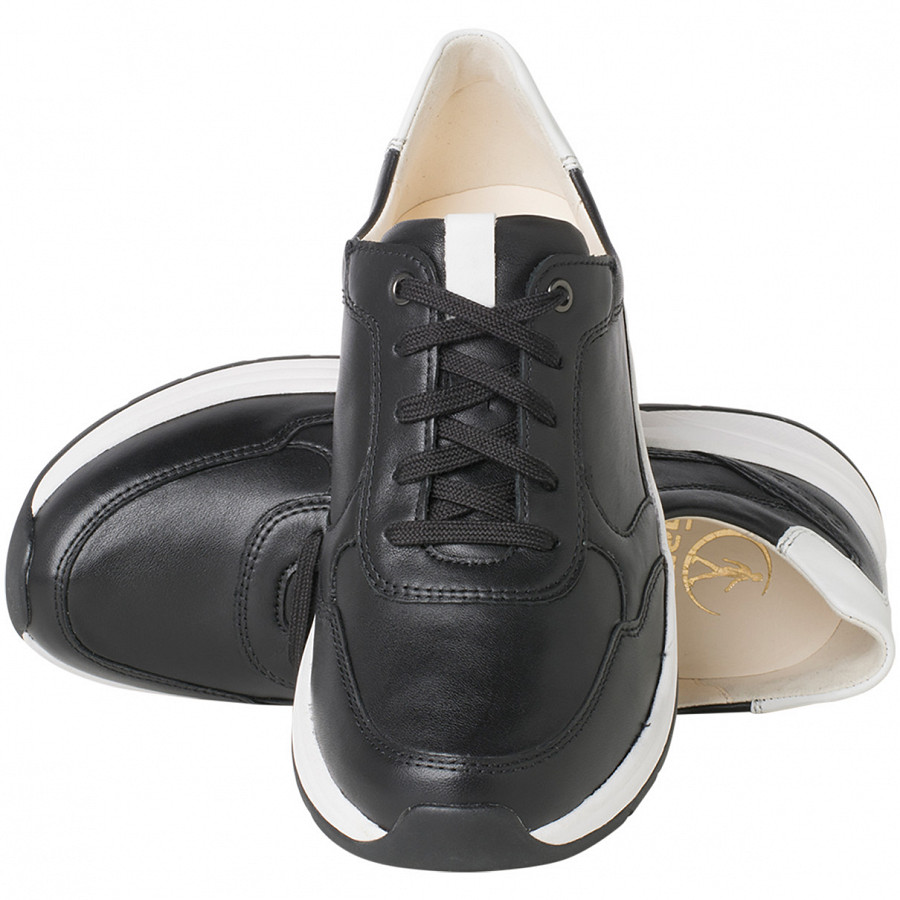 Aktivierung und Entlastung – auf diesem Prinzip fußt die patentierte GANTER AKTIV Technologie. Die 4-Punkt-Durchrollsohle übt bei jedem Schritt einen angenehmen Massageeffekt auf den Fuß aus. Diese Abrollfunktion fördert eine aufrechte Haltung, gibt Stabilität und entlastet den Rücken sowie die Gelenke – dadurch gehen Sie leichter und tun AKTIV etwas für Ihre Gesundheit. Aus Veloursleder gefertigt, wählen Sie zwischen einer breiten Palette an sommerlichen und dezenten Farben. Das hochwertige Lederfutter fühlt sich herrlich soft an. Die Sohle ist besonders leicht und rutschfest. Der Mix aus schwarzen und weißen Komponenten verkörpert eine moderne, sportive Optik. Für Frauen, die Gesundheits- und Modebewusstsein sowie Körper und Geist in Balance halten!