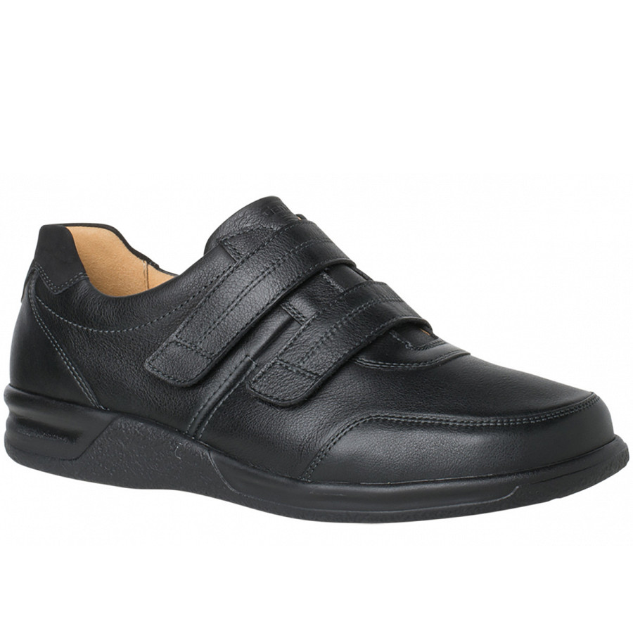 Unser Modell KURT gibt es in verschiedenen Varianten – sie alle sind echte GANTER Klassiker. Aus schwarzem Nappaleder gefertigt, entscheiden Sie sich für einen bequemen Allrounder. Die beiden Klettriemen ermöglichen eine individuelle Justierung der Passform. Die weiche Polsterung, das antibakterielle Futter mit Silberveredelung und eine beinahe nahtlose Verarbeitung sorgen für bequemes Gehen und ein gutes Fußklima in den Schuhen unserer Sensitiv-Kollektion. Die Sohle aus PU-Material ist zum einen sehr leicht und verfügt zum anderen über eine ausgezeichnete Dämpfung. Als Komfortschuh in der Weite K findet der Fuß problemlos Platz, während die leicht hochgezogene Ferse den notwendigen Halt gibt. Das wechselbare Korkfußbett mit Lunair-Med Polsterung lässt sich durch eigene Einlagen austauschen. Den ganzen Tag über problemlos in Schuhen unterwegs – KURT macht’s möglich!